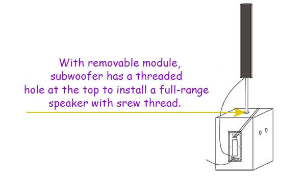 14) The whole speaker uses removable combination design; there’s a threaded hole on the top of the subwoofer for linear full range speaker with thread..