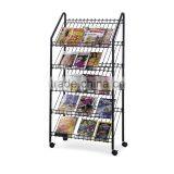 4-Shelf Mobile Metal Brochure Holder Magazine Rack