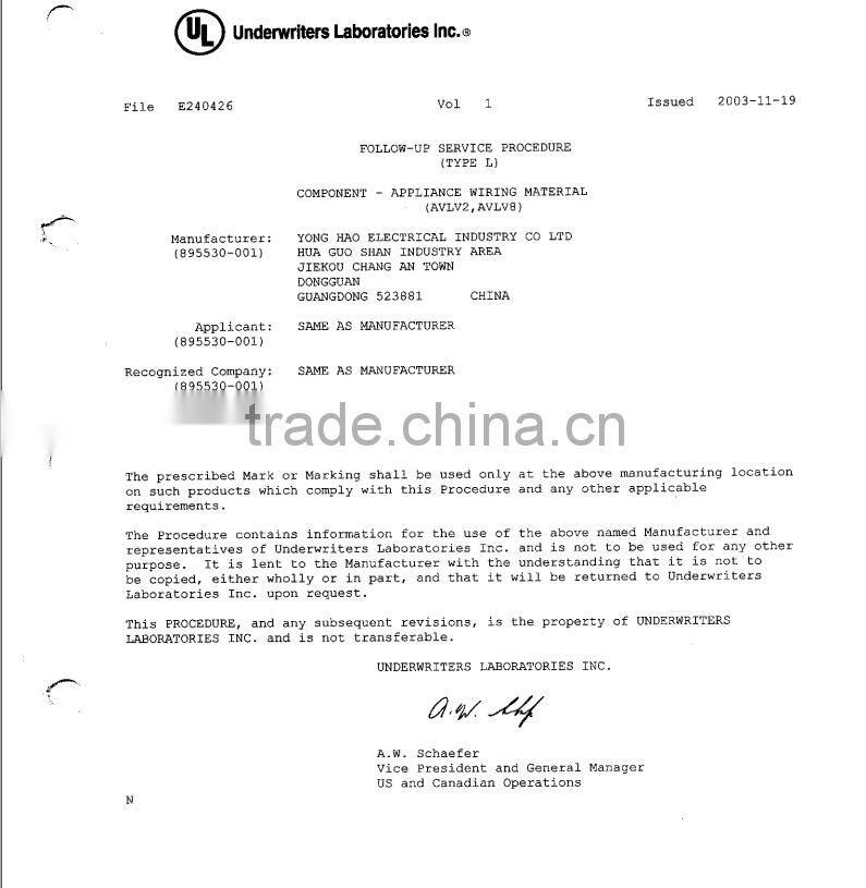 Yonghao Electrical Industry Co., Ltd. was founded in 1997, Which Specialized in Computer peripheral connecting cable, high standard interface cable, audio/video cable, ribbon cable, power cable, plug cable, plug cable and etc. We have customer from both domestic markets and abroad, such as Foxconn, Huawei, ASUS Tek and etc. Now our production has become more and more mature. We have established a production system ranging. From copper stretching, PVC insulation material manufacturing, electric wire, electric wire extrusion, manufacturing. And we take a prominent position in this industry.