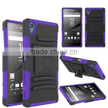 Colorful 3 in 1 Holster Silicone + PC Hybrid Heavy Duty Kickstand Belt Clip Case for Sony Xperia Z5 , phone cases for sony z5