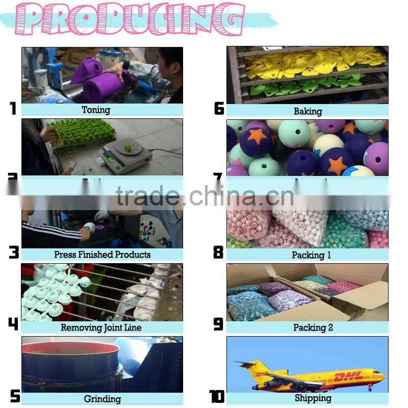 Shenzhen BoDa Silicone Co., Ltd., founded in 2012,main products are: Silicone loose beads, Silicone Teething Necklaces, Silicone Baby Teethers, Silicone Jewelry Sets, Silicone Pendants, Silicone Beaded Bracelets,Silicone Bangles, and Baby Teething Necklace. Our materials are food grade silicone-FDA APPROVED. 100% safe for babies.