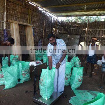 Each bag contain 25 coconuts, Bag weight is 14 -15 kg.