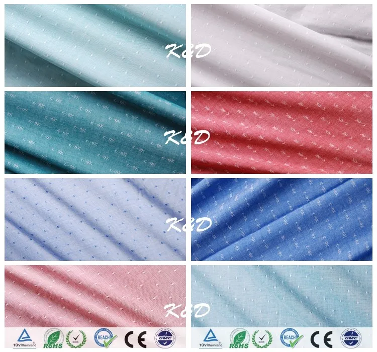 100% Cotton Blue Solid Jacquard Dobby Weave Fabrics for Shirting Clothing Dressing Skirt