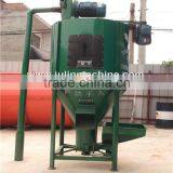 The feeding stuff will come in from the self-suction pipe to the mill where they were grinded by the strong hitting of high speed rolling hammer and the friction forces produced between hammer pieces and screen panel. Then they will come into the below of machine from screen panel. After blending them with the premix powders, the vertical screw lifter at high speed will elevate them up to top and then fall back down in the diffusion way and mix together evenly. The feed will be discharged from the bottom. The screw conveyor can be used while discharging.