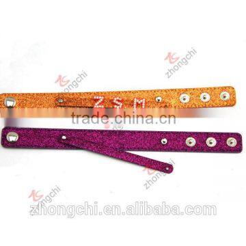 Wholesale purple, orange glitter leather bracelet, assorted slide charms diy leather bracelet |