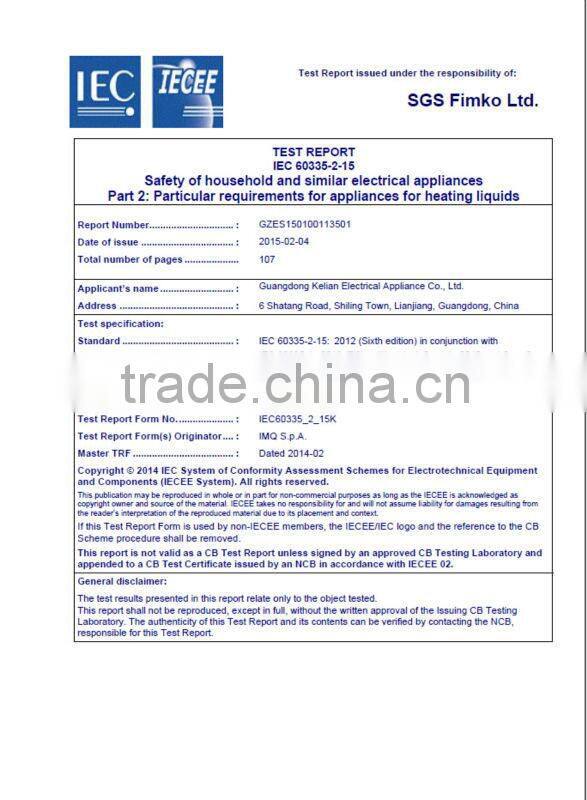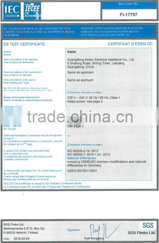 2.And this electeic kettle stainless steel is 304 stailless steel .