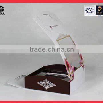 | Material | Customized. Wood,leather, velvet,PU, clothe, art paper, coated paper, silver card paper, gold card paper, corrugated paper, special paper etc. |