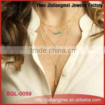 Fashion multi-layer 4 layers turquoiso beads pendant gold chain short chain necklaces designs