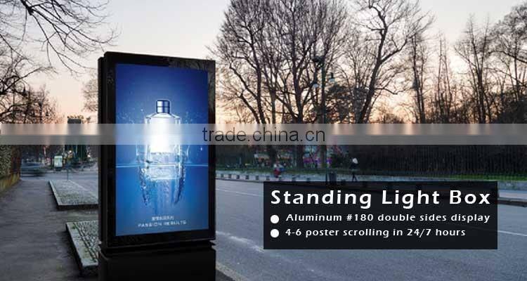 You will have the largest selection of double side outdoor aluminum lightbox and intelligent function engineered to deliver advertising messages.Our patented scrolling system and LED light boxes are approved by CE, SASO. All of our lightboxes are backed by a two year warranty.