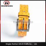 Yellow Genuine Leather Types of Waist Belt With Stitches of Fashion Design