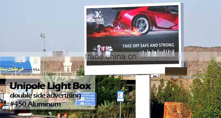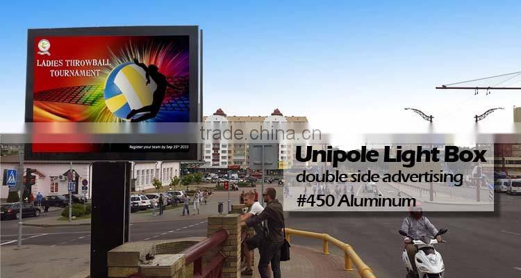 Industrial standard aluminum T6063 with double sides adevertising board, freestanding light box billboard is made with rigid yet lightweight aluminum structure, as durable as 10 years with PVDF coating against different weather, suitable for outdoor application.