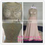 Transparent Bodice With Many Beadings Evening Dresses With Sleeves Photo