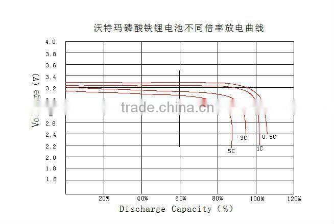 Chart 1: OPTIMUM Lithium ion Battery 32650 Discharge Curve at Different Rate: 0.5C - 5C