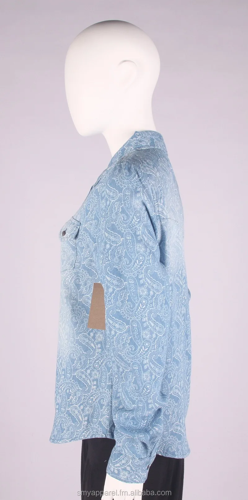This shirt is made from garment wash with paisley printing,which has good hand feeling.