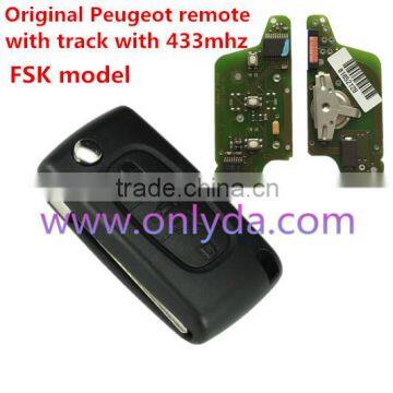 Original Peugeot 3 Button Flip Remote Key with 433mhz with trunk button battery on PCB with FSK model