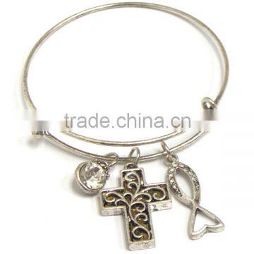 cross charm adjustable wire religious bangle bracelet .