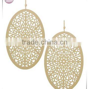 Matte Gold Tone Thin Metal Fish Hook Oval Dangle Earring Set .