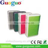Guoguo 5200mAh Long Lasting High Efficient Safety Dounts Portable External Mobile Power Bank for Smartphone