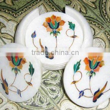 We are manufacture of marble and stone craft gift and these type of marble and soapstone inlay and carved coaster set flower motifs inlay work and also with company logo.....