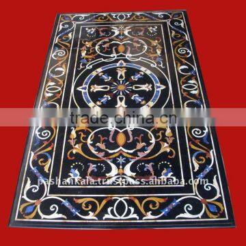 Black Marble Stone Pietra Dura Dining Table Top