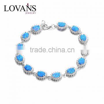 925 Sterling Silver Blue Opal Handmade Bracelet SBI184W |