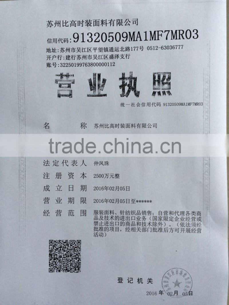 Suzhou Bingotex Co,.Ltd was established with investment of 8 million us dollars. We own over 300 sets of water jet and jacquard looms and warping and sizing machines. Daily output 100,000 meters. Main product: all kinds of chiffon, georgette, crepe, koshibo, faille, high twisted fabrics etc.