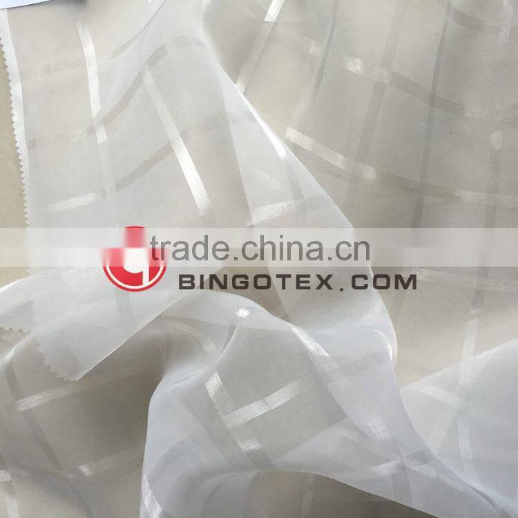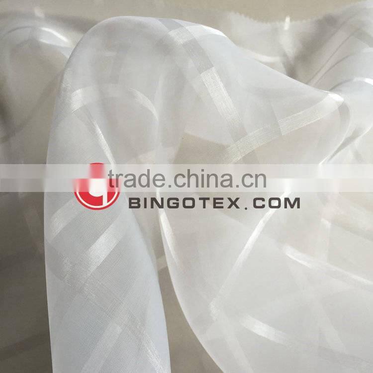 This fabric is a elegant, first class quality chiffon fabric, bright white color, it is made of polyester and chiffon, and it has dobby design surface