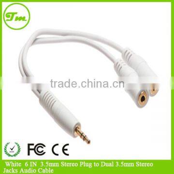 White 6 IN 3.5mm Stereo Plug to Dual 3.5mm Stereo Jacks Audio Cable |