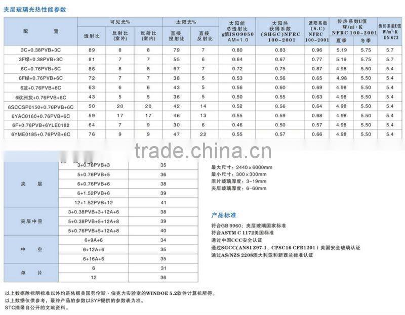 Thickness: 3+0.38+3mm, 4+0.38+4mm, 5+0.38+5mm, 6+0.38+6mm, 3+0.76+3mm, 4+0.76+4mm, 5+0.76+5mm, 6+0.76+6mm etc