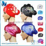 2016 Newest Design Custom Printed Silicone Swim Cap for Long Hair Silicone Swim Cap