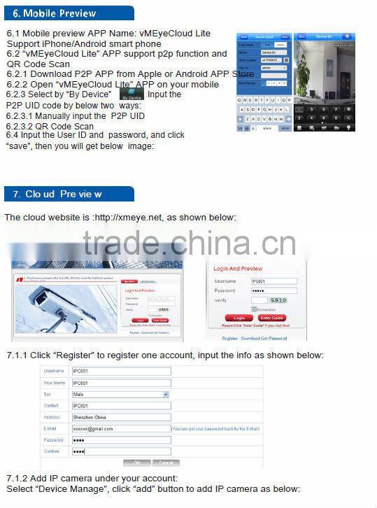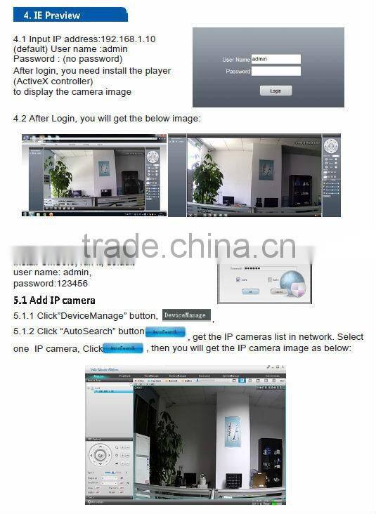 5)H.264 High Profile/M-JPEG Coding,rate 96k~6M bps, max 30fps 1080P, Frame rate adjustable, supports three -stream