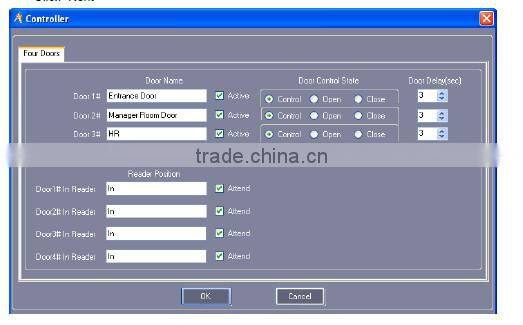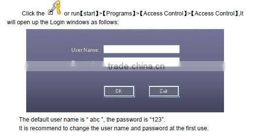 | Conventional Function | offline operation; real time supervision; photo display; mass storage; flexible user privilege setup; remote unlocking; multi-user supervision; quick setting; convenient checking and query; revisable and printable report form; report form;report can be exported to excel file; card+password unlocking; alarm for long time unclosing;alarm for invalid card swiping; first card unlocking;alarm for illegal break in; unlocking at definite time; e-map ,patrol, meeting,const meal etc. |