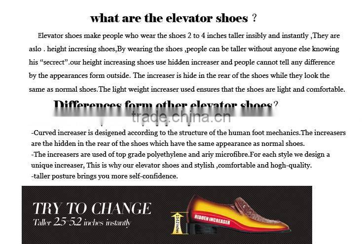 Height increasing shoes are very popular for the customers at home and abroad. We have more than 300 exclusive stores in China and 50 agents oversea. Thanks to our best quality and finest craftsmanship .Our elevator shoes are well sold in USA,UK,Korea,Southeast Asia and other countrie.
