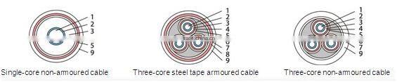 2,Conductor Screen 5,Metallic Screen 8,Armour