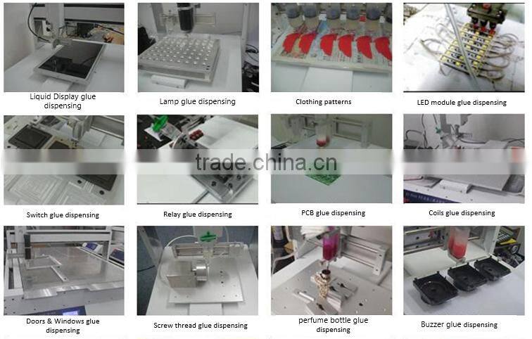 Dispenser for industrial production in various fields: the phone keypad, printing, switches, connectors, computer, digital Code products, digital cameras, MP3, MP4, electronic toys, horn, buzzer, electronic components, integrated circuits Road, circuit board, LCD , relays, speakers, crystal components, led lamp , Chassis bonding, optical mirrors Head, seals and other mechanical parts.
