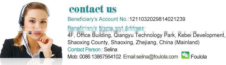 2. For big quantity order, we ask 20-30% deposit before production, and the remain will paid against delivery.