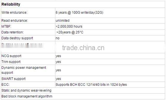 Sequential Read510MB/s Sequential Write166MB/s 4KB Random Read IOPS70000 4KB Random Write IOPS3000 Response Time0.2ms
