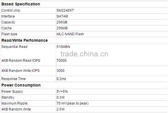 Control chip SM2246XT Interface SATAIII Capacity 256GB Cache256MB Flash type TLC NAND Flash