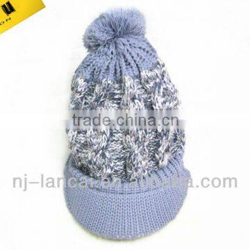 Fashion Winter Ladies Knitted Cable Peaked Hat With Pom-pom
