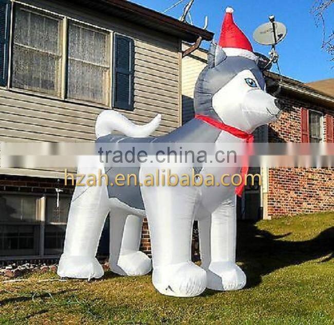 Lighting Inflatable Husky With Hat for Christmas Decoration