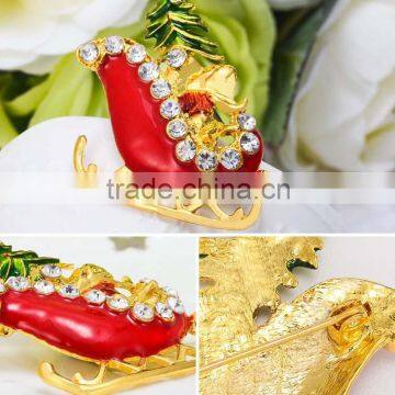 47*44mm Unique Design Personalized Rhinestone Christmas Santa Sleigh Brooch