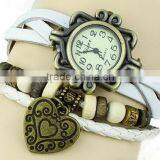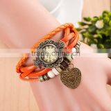 In Stock 8 Colors Fashion Women Handmade Women Watch Retro Leather Bracelet Heart Decoration Quartz WristWatches