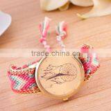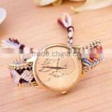 New Arrival Handmade Rope Bracelet Wristwatch Bohemia Geneva Golden Chain Fabric Dress Watch Fashion Women Casual Watch