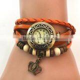 Hamsa Pendant Leather Strap Retro Beads Watches Hand Casual Watch Bronze Women Wristwatch Bracelet Watch