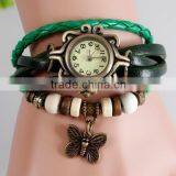 In Stock New Arrivals Fashion Women Genuine Leather Vintage Butterfly Watch Bracelet