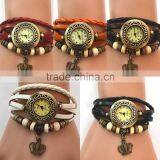 New Hot Sale Original High Quality Women Genuine Leather Vintage Watches Bracelet Wristwatches Anchor Pendant