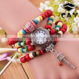New Arrival Vogue Women Dress Watch Multilayer Wood Bead String Watch With Small Bell
