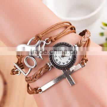 2015 New Fashion Around Wrap Watch Cross Charm Bracelets Women's Quartz Wrist Watch