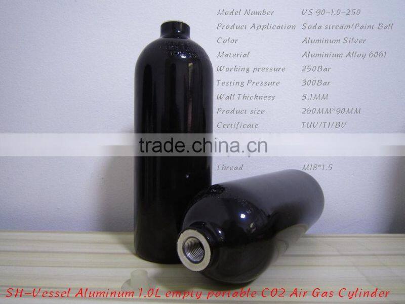 1.0L Aluminum Seamless Refillable Empty Portable CO2 Air Gas Cylinder and Tank for Soda Stream and Paintball