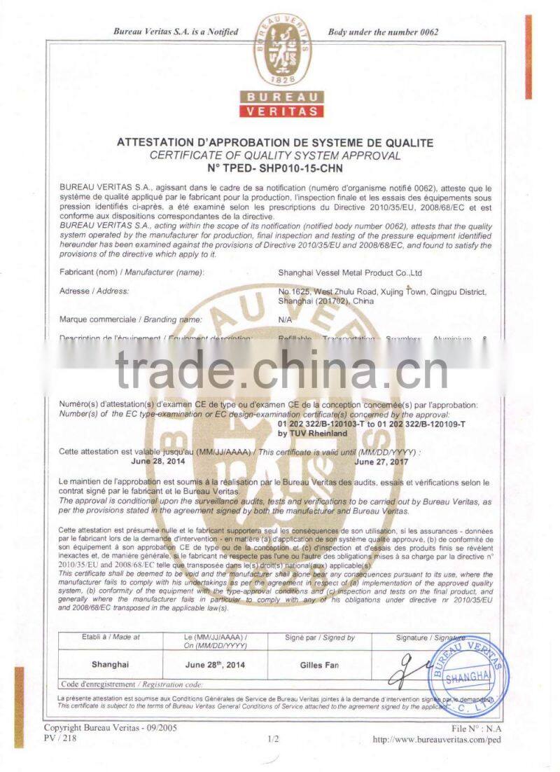 Shanghai Vessel Metal Products Co.,Ltd. is professional high pressure cylinder manufacture, it is locating near Hongqiao business sites of Shanghai and around 10minutes by car to Shanghai Hongqiao transportation hub.
